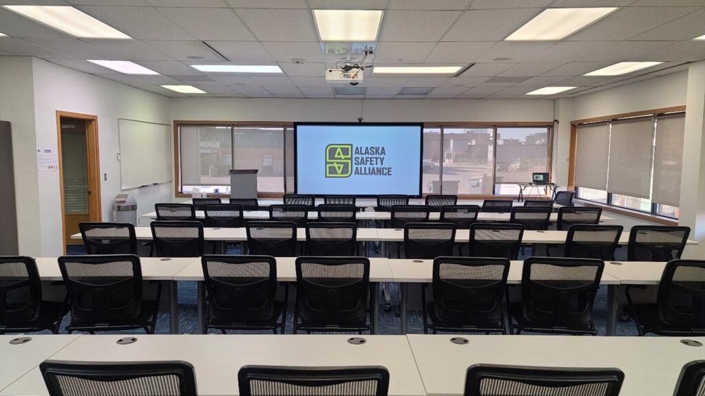 Home » Room Rentals Train your team or hold your next meeting at the Alaska Safety Alliance. Our large classroom is a great option in midtown for your next gathering. Amenities, such as a ceiling mount projector and integrated audio conferencing, projection screen, and flexible layout options makes setup easy and convenient. ASA Classroom or Conference Room Furnished with rolling tables and chairs, the room can easily be configured to accommodate your meetings or training classes. Maximum Capacity: 74 | Maximum Seating w/Tables: 40 Amenities include: Ceiling-mounted projector, integrated conference room audio and video systems, a large whiteboard, rolling tables, chairs, a podium, and a large coffee maker are included with this space. Water cooler and vending machine with snacks and drinks in the room. Wi-Fi is included. Smartboard available upon request.